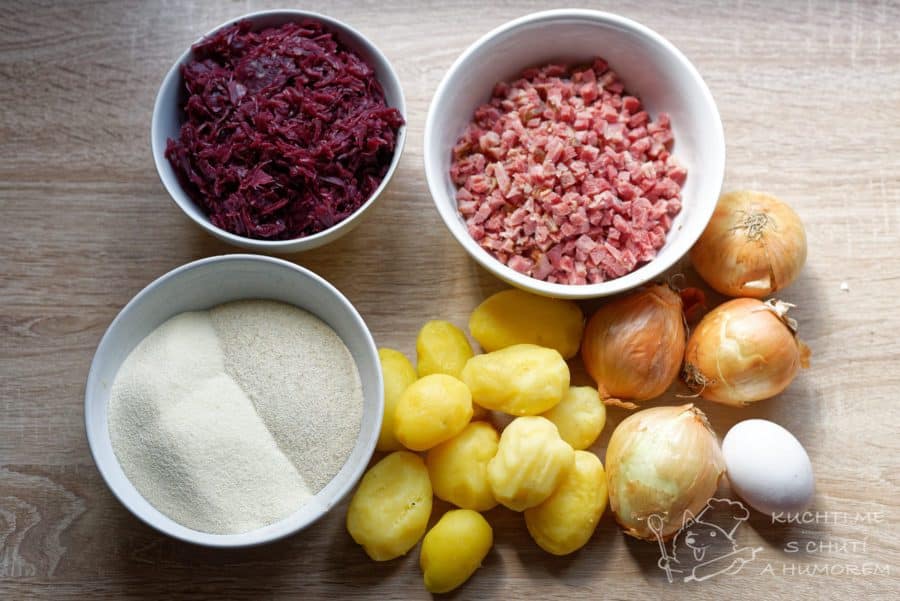 Další recepty z kategorií: Další recepty dle ingrediencí: brambory, červené zelí, cibule, Hladká mouka, hrubá mouka, krupička, sůl, uzené maso, vejce