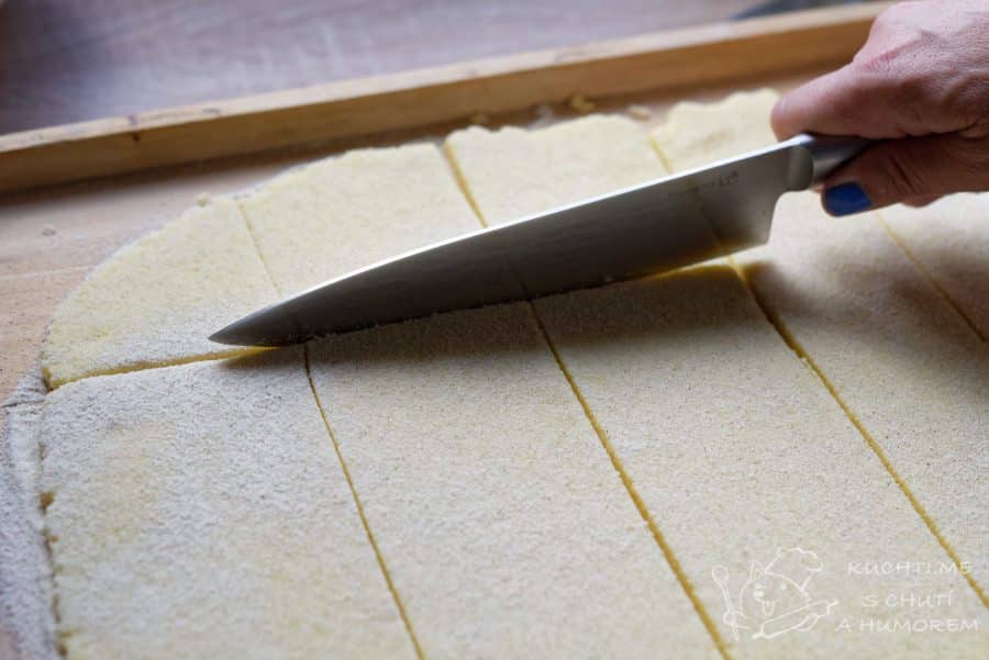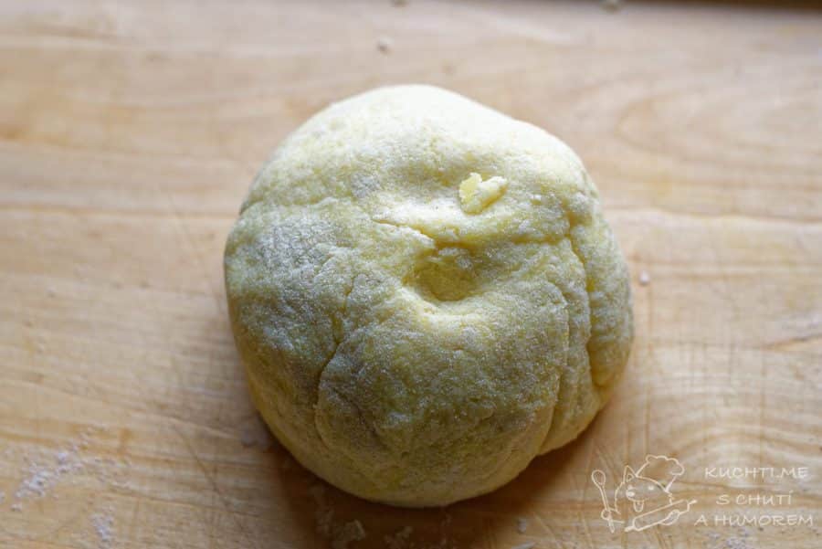 Jednotlivé čtverce bereme do ruky a spojíme jednotlivé cípky k sobě a prsty kraje těsta pečlivě uzavřeme. Knedlík pak v dlaních ještě poválíme, aby získal krásný kulatý tvar a ještě se uzavřel.