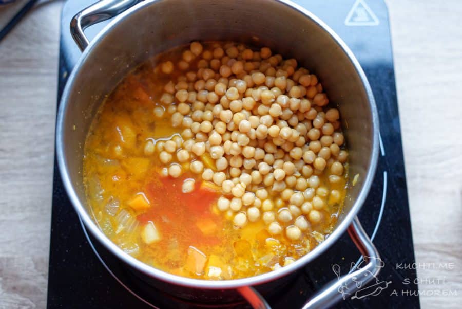 Pak už jen přidáme slitou cizrnu a ještě 5 minut vaříme. Zelenina by měla být krásně měkká.