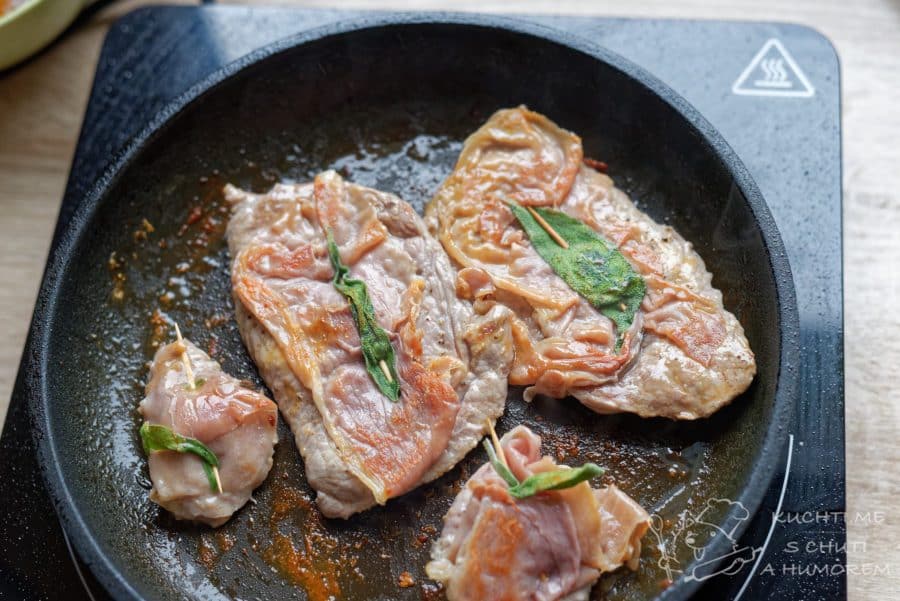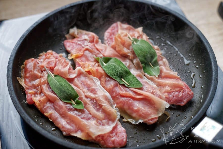 Saltimbocca je opravdová lahůdka… a taky rychlovka. Připravíme si pánev, do které dáme trošku olivového oleje a necháme rozehřát na vyšší teplotu.