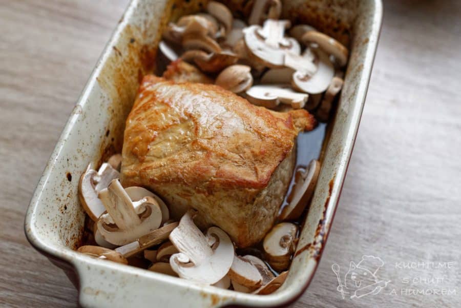 Pokud by maso začalo příliš hnědnout, dejte na něj poklici nebo případně klidně pečicí papír nebo alobal.