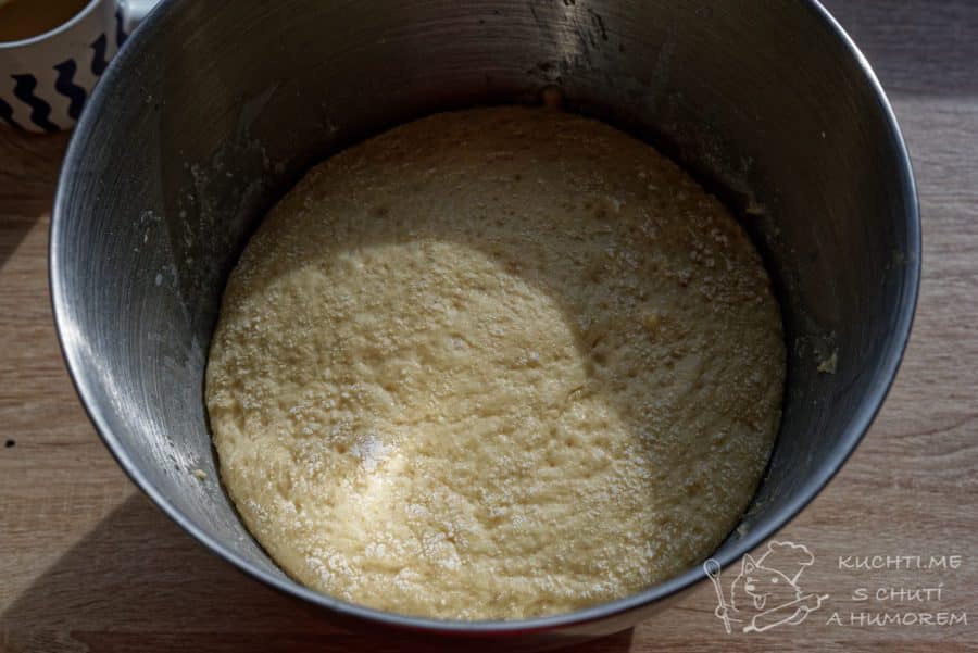 Jak bude těsto vypadat? Těsto je hodně lepkavé, s tím je potřeba počítat. Vůbec se toho ale nebojte. Jakmile bude kompaktní (a stále se bude lehce lepit), tak jej stěrkou něžně oddělte od stěn a zamoučete. Těštíčko necháme takto kynout asi 1,5 hodiny, dokud nezdvojnásobí objem.