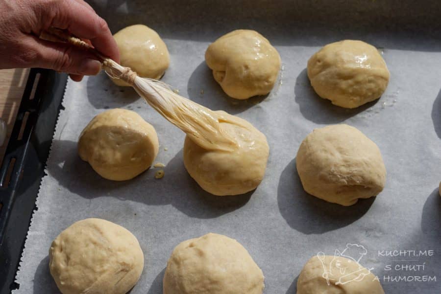 Bulky ještě před samotným pečením potřeme rozšlehaným vajíčkem s troškou mléka a buď je necháme hladké, nebo je můžeme posypat sezamem nebo třeba mákem.