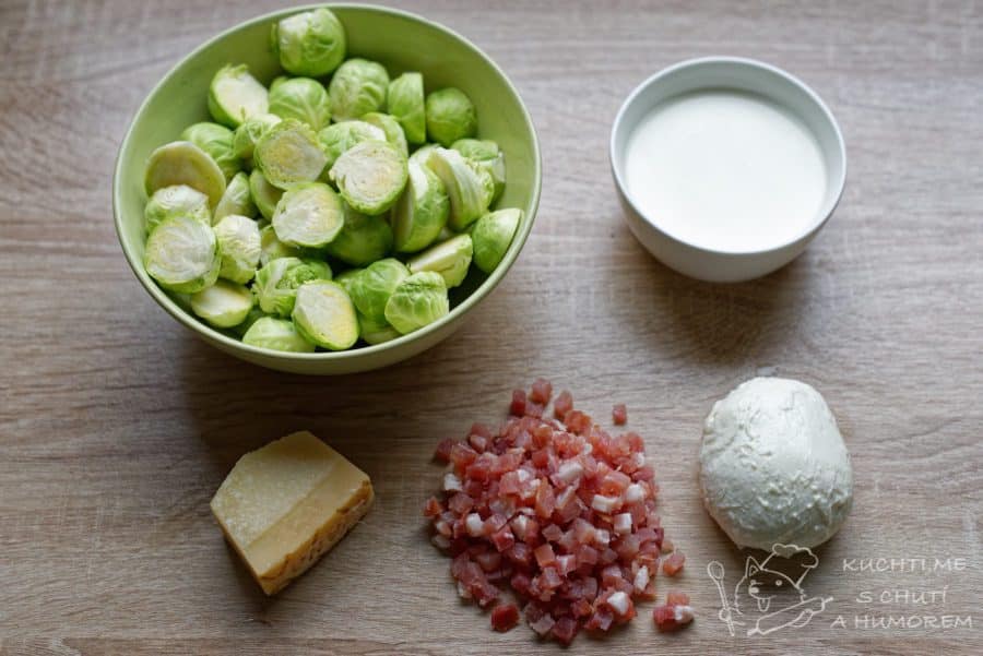 Ingredience na růžičkovou kapustu zapečenou se sýrem