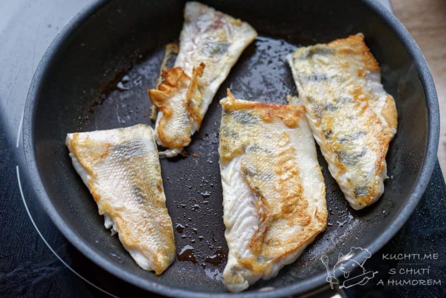 Já jsem na recept používala tresku, které stačilo 3–4 minuty z každé strany.