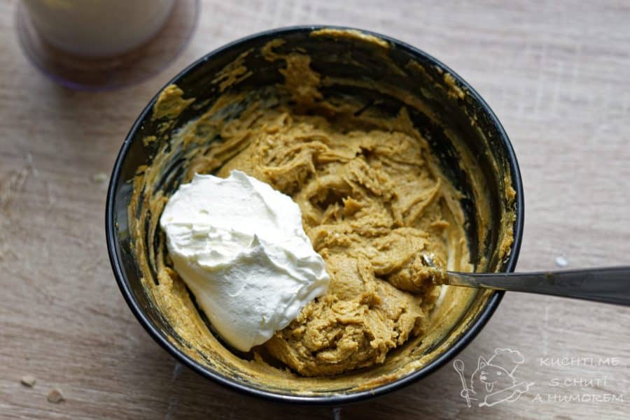 Těsto kyne, takže si můžeme připravit pistáciový krém. Do misky dáme pistáciovou pastu nebo máslo, přidáme mascarpone a moučkový cukr a promícháme. Ve šlehači ušleháme šlehačku a opatrně ji vmícháme do zbytku ingrediencí. Krém necháme vychladnout v lednici.