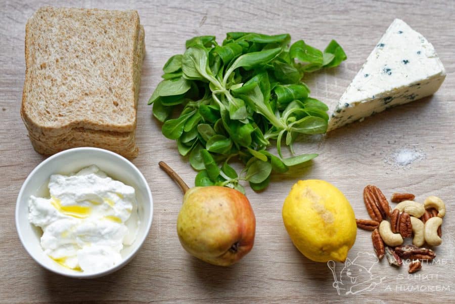 Ingredience na sendvič s hruškami a sýrem